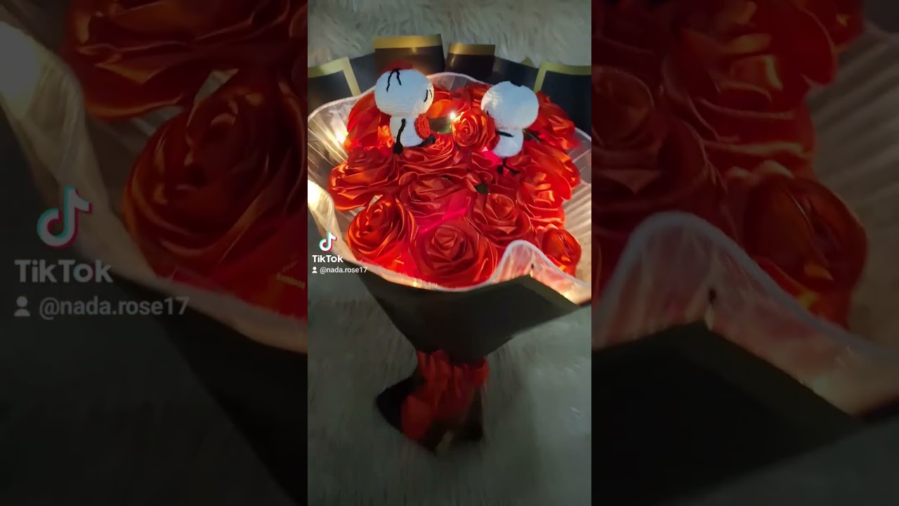 باقة ورد حمراء مضيئه ❤️١٥ ورده ساتان ❤️